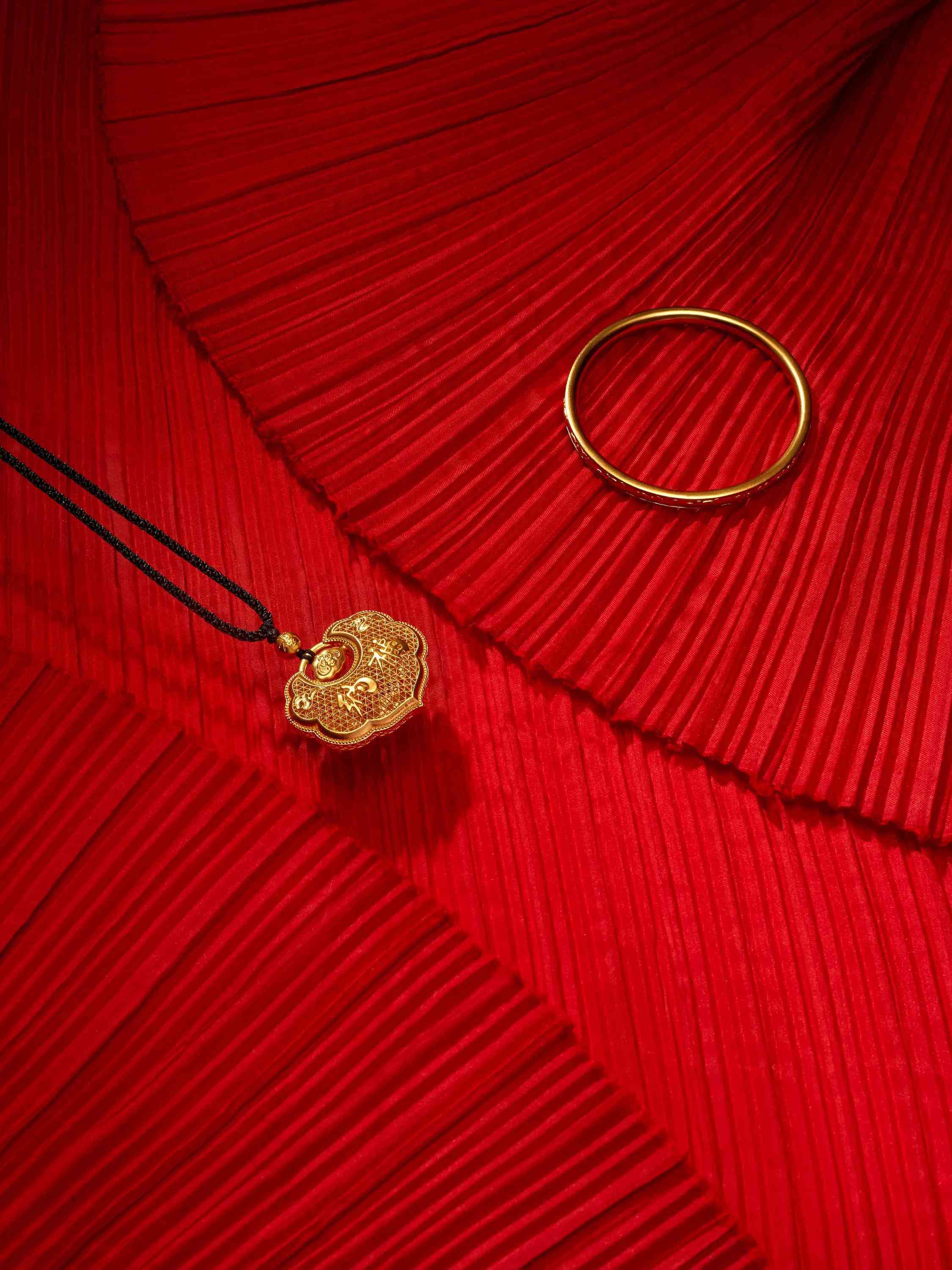 周大福韓美林藝術(shù)·傳承福轉(zhuǎn)金安掛墜、周大福韓美林藝術(shù)·傳承天賜洪福手鐲