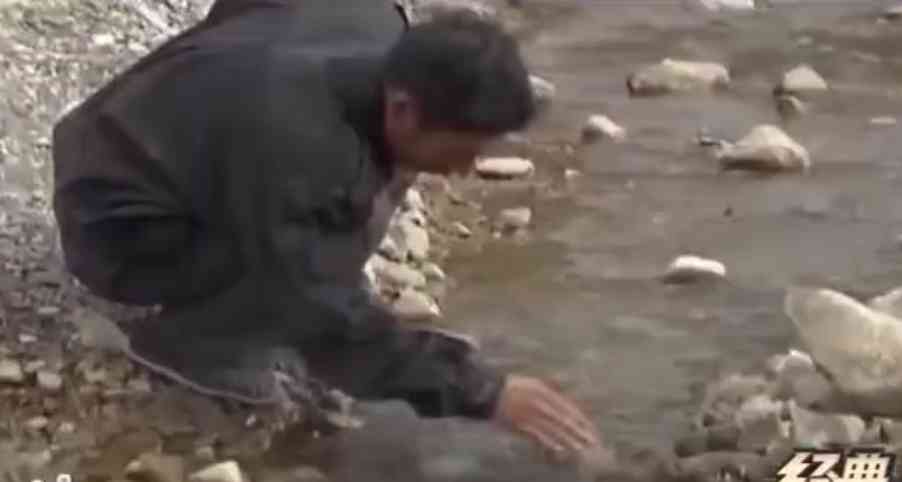 隨后,丁平發(fā)有些好奇地擼起褲腿,緩緩走向石頭所在位置。