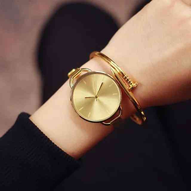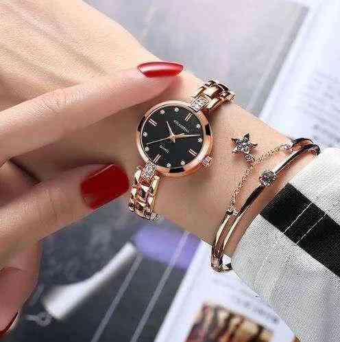簡單款式的表搭配黃金手鏈或者是手鐲是最合適不過的了,不會(huì)讓手鐲和手鏈過于醒目,更是有一種簡約時(shí)尚感。