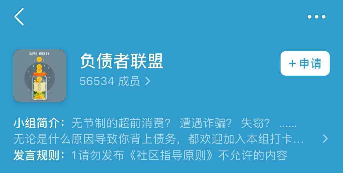 2019年12月2日成立的“負(fù)債者聯(lián)盟”小組,至今已超過(guò)56000名成員。