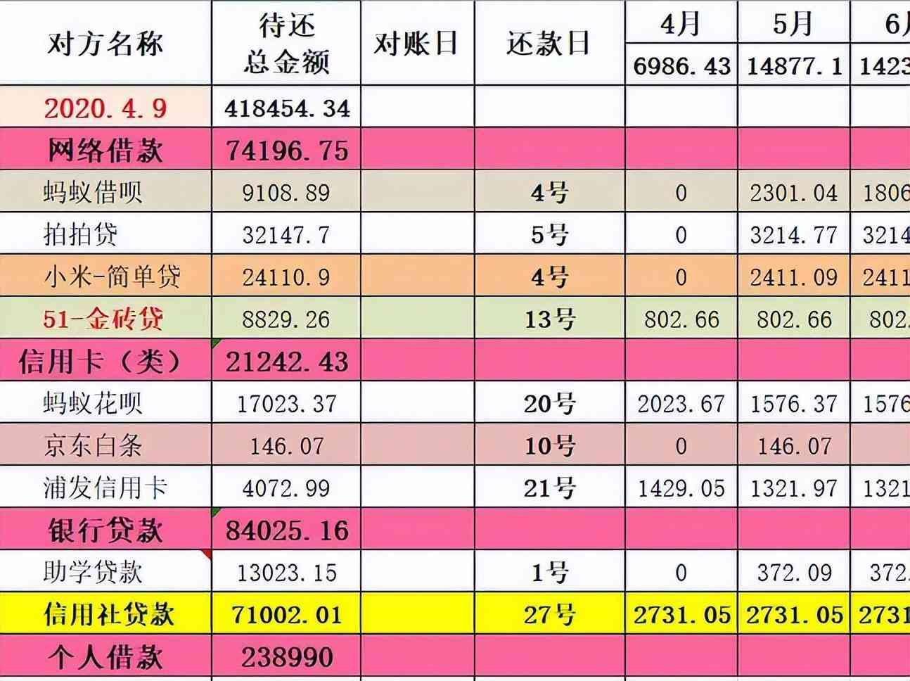 2020年4月9日,王木木終于理清了自己所有的剩余債務(wù):418454.34元。