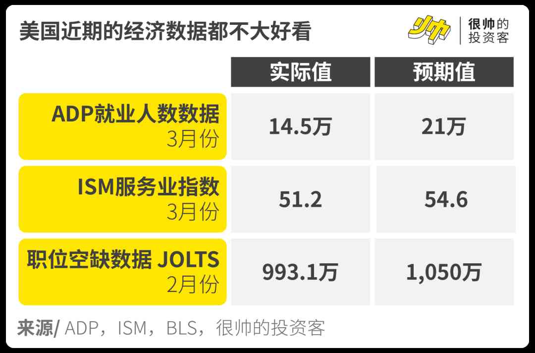 再就是3月份的ISM服務(wù)業(yè)指數(shù)(可以理解為美國的 PMI),降到了三個月新低51.2,也比市場預(yù)期的54.6低不少。
