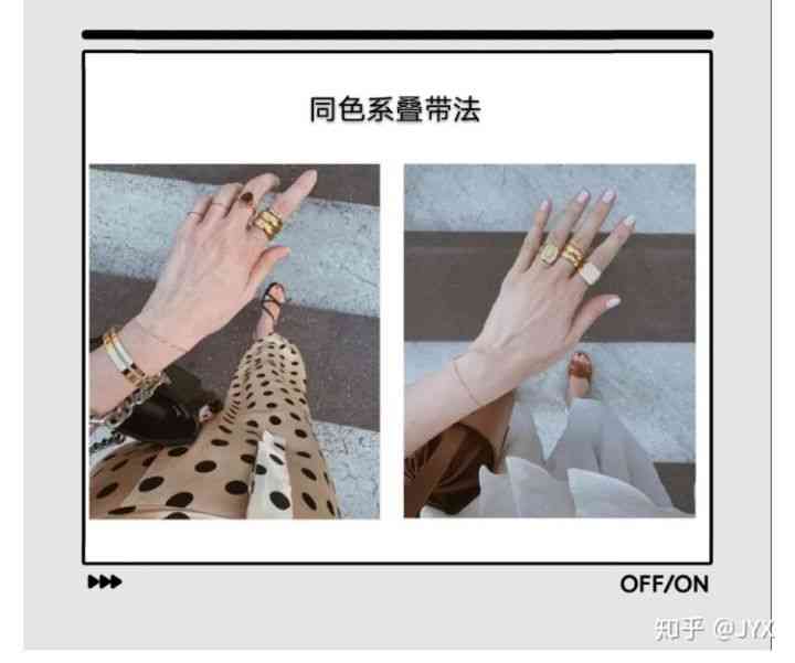 同色系疊戴,指的是“金戒指與金戒指”疊戴、“銀戒指與銀戒指”疊戴。