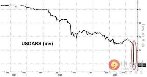 周一,阿根廷金融市場(chǎng)立刻對(duì)此次初選的結(jié)果做出了負(fù)面反應(yīng)。阿根廷比索對(duì)美元匯率崩跌,主要股指暴跌38%,阿根廷在美股上市企業(yè)集體暴跌。