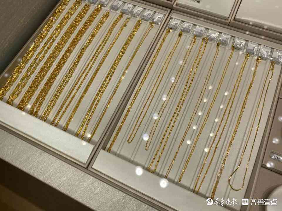 3月25日傍晚,記者來到棗莊市市中區(qū)解放路的“金店一條街”,發(fā)現(xiàn)每家珠寶店都將自己店內(nèi)款的金飾擺放在了進(jìn)門顯眼的位置,供消費(fèi)者選擇。已是傍晚,但進(jìn)入店內(nèi)挑選、咨詢黃金的消費(fèi)者依舊不在少數(shù)。