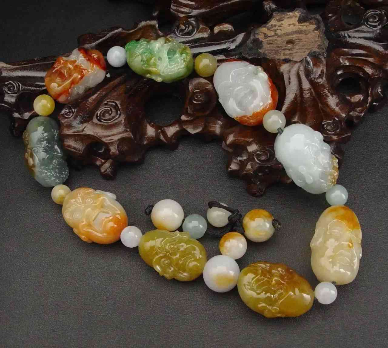 福祿壽:同時具有綠色、紅色、紫色或者同時具有紅、黃、綠的三色翡翠稱為"福祿壽翡翠"。
