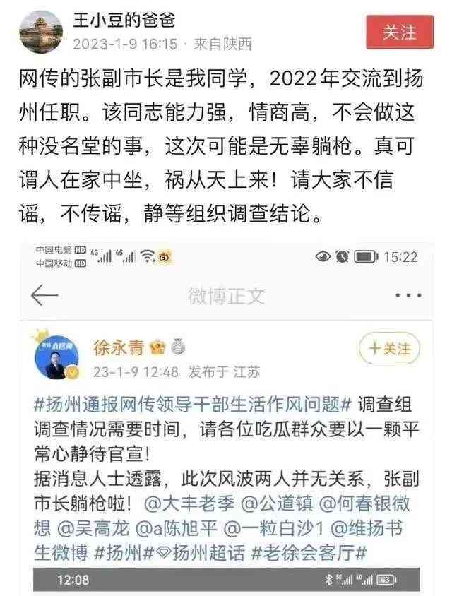 到目前為止,揚(yáng)州官方出了一個(gè)通報(bào),會(huì)對(duì)該事件高度重視,并成立專(zhuān)項(xiàng)核查組深入核查,首發(fā)信息者和戴璐丈夫跳出來(lái)辟謠,自稱(chēng)張副市長(zhǎng)同學(xué)的人站出來(lái)發(fā)聲:
