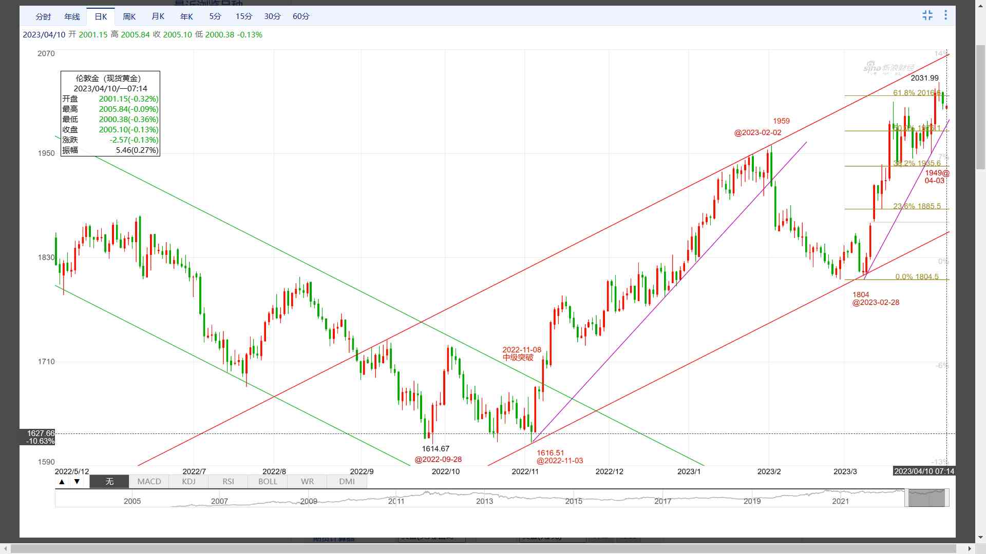 上周五耶穌受難日,黃金停盤在2007.67美元。同日上線的金價(jià)分析指出:“目前,按藍(lán)色下跌通道看空金價(jià),黃金分割線預(yù)測金價(jià)的下一目標(biāo)是38.2%黃金線@2000.4美元?!?/p>