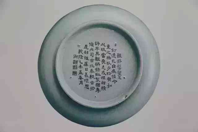 底刻清高宗乾隆皇帝御制詩(shī)(1772):“盤(pán)子徑五寸,如規(guī)口面圓,出陶無(wú)髻墾,閱世獨(dú)完全,冰裂紋隱約,鐵定跡局連,底心鐫甲字,先得此同然?!鼻∪沙叫麓河}。鈐印二:“太?”“古香”。