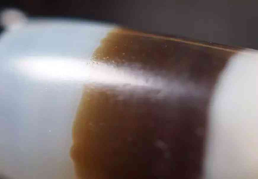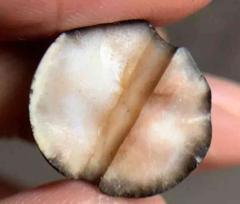 瑪瑙埋藏在地下,由于土壤內(nèi)含有的酸堿度而形成的沁色,稱之為灰皮,厚重且顏色奶白稱之為奶皮。