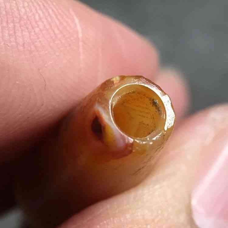 注:千年驃珠pyu珠木化石材質(zhì)的孔道內(nèi)壁