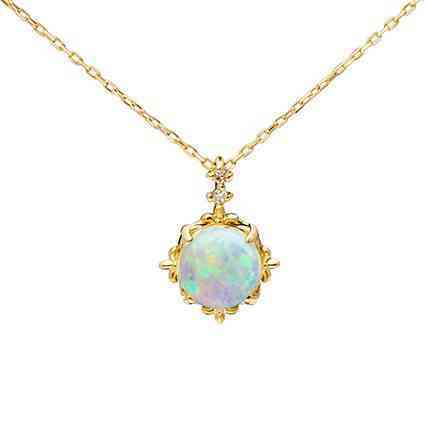 展示:18k金鑲嵌爪鑲白歐泊項鏈