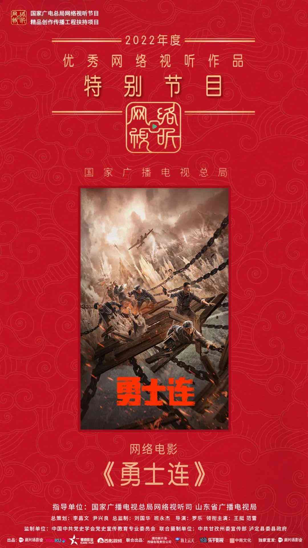 在3月30日第十屆中國網(wǎng)絡(luò)視聽大會(huì)舉行的國家廣播電視總局2022年度優(yōu)秀網(wǎng)絡(luò)視聽作品發(fā)布儀式上,由國家廣播電視總局網(wǎng)絡(luò)視聽司、山東省廣播電視局指導(dǎo),中國中共黨史學(xué)會(huì)黨史宣傳教育專業(yè)委員會(huì)監(jiān)制,中共甘孜州委宣傳部、瀘定縣委縣政府聯(lián)合攝制,新片場(chǎng)影業(yè)、優(yōu)酷、麥奇影視、西影數(shù)碼出品,濰坊新片場(chǎng)傳媒、海上云天、樂于影視、中南紅(北京)聯(lián)合出品,羅樂執(zhí)導(dǎo),王挺、范雷等諸多實(shí)力派演員聯(lián)手加盟的獻(xiàn)禮建黨和長(zhǎng)征勝利的重點(diǎn)歷史題材項(xiàng)目《勇士連》榮獲得“2022年度優(yōu)秀網(wǎng)絡(luò)視聽作品特別節(jié)目”,實(shí)現(xiàn)了口碑和市場(chǎng)雙贏。尹興良表示:“除了拍好影片本身外,和平臺(tái)的配合也尤為重要。目前的時(shí)間節(jié)點(diǎn)下不僅要熟悉平臺(tái)的運(yùn)營(yíng)規(guī)則,更要考慮如何在站外做營(yíng)銷引流到平臺(tái),這也是《勇士連》除了和平臺(tái)碰撞出好的發(fā)行檔期,同時(shí)也通過新媒體渠道引流到站內(nèi),核心點(diǎn)在如何借助外勢(shì)為影片賦能?!?p style="text-align: center;margin-bottom: 8px">