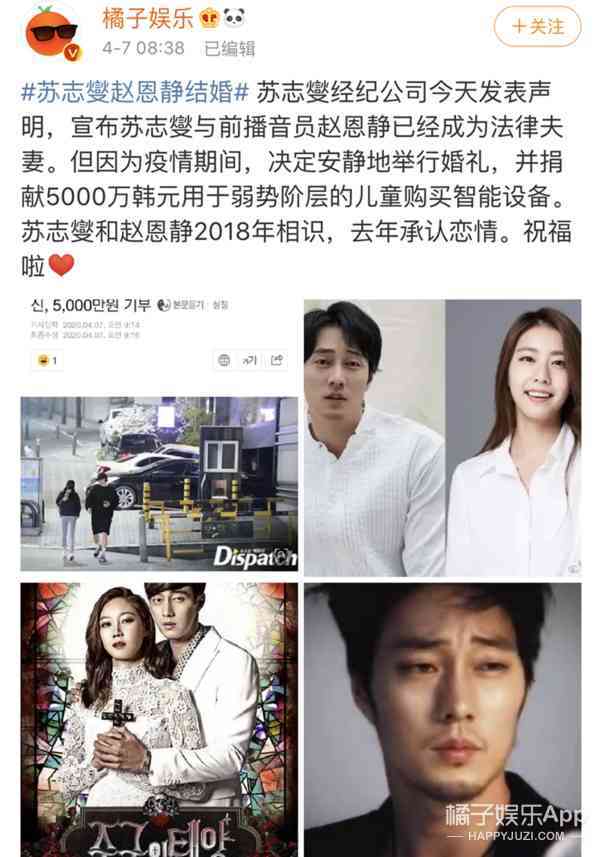 導(dǎo)讀: 如果你還記得“蘇志燮在去年公布過戀情”,那他今天一大早宣布結(jié)婚就不算什么稀罕事↓雖然我還是嚇一跳一直自我洗腦“帥哥都是單...