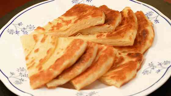 將面團搟薄,加入適量鹽,刷上杏仁油,將面餅切一刀口卷起來,豎著壓平,搟至成餅狀,鍋中加入杏仁油,將餅放入鍋中表面再刷上杏仁油,烙制5分鐘。