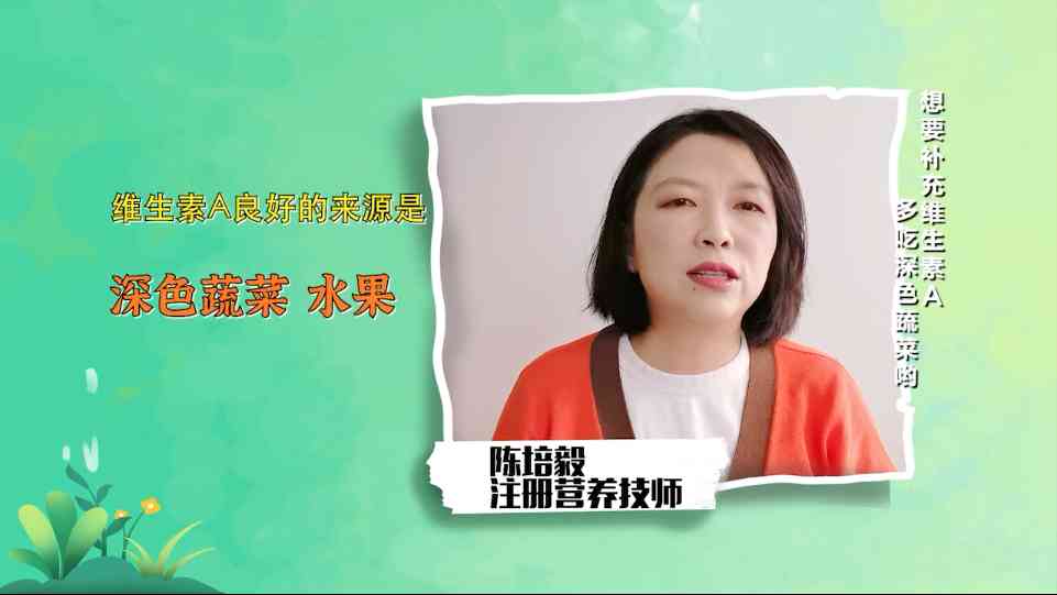 維生素A良好的來源有深色蔬菜、水果,比如像胡蘿卜、南瓜、紅薯、辣椒、菠菜、西藍花、芒果、柿子、杏等。