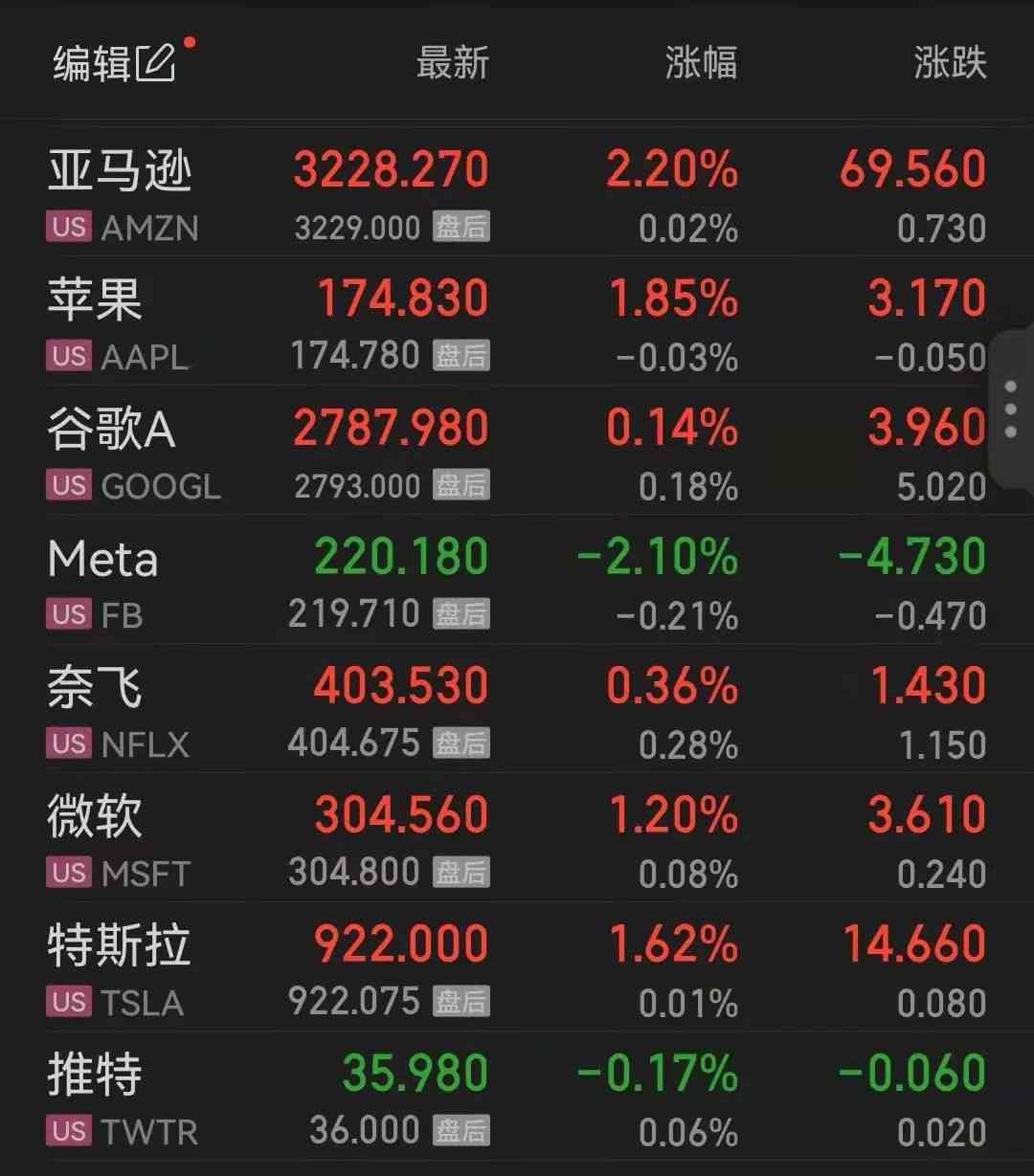 美國(guó)大型科技股多數(shù)上漲,亞馬遜漲逾2%。