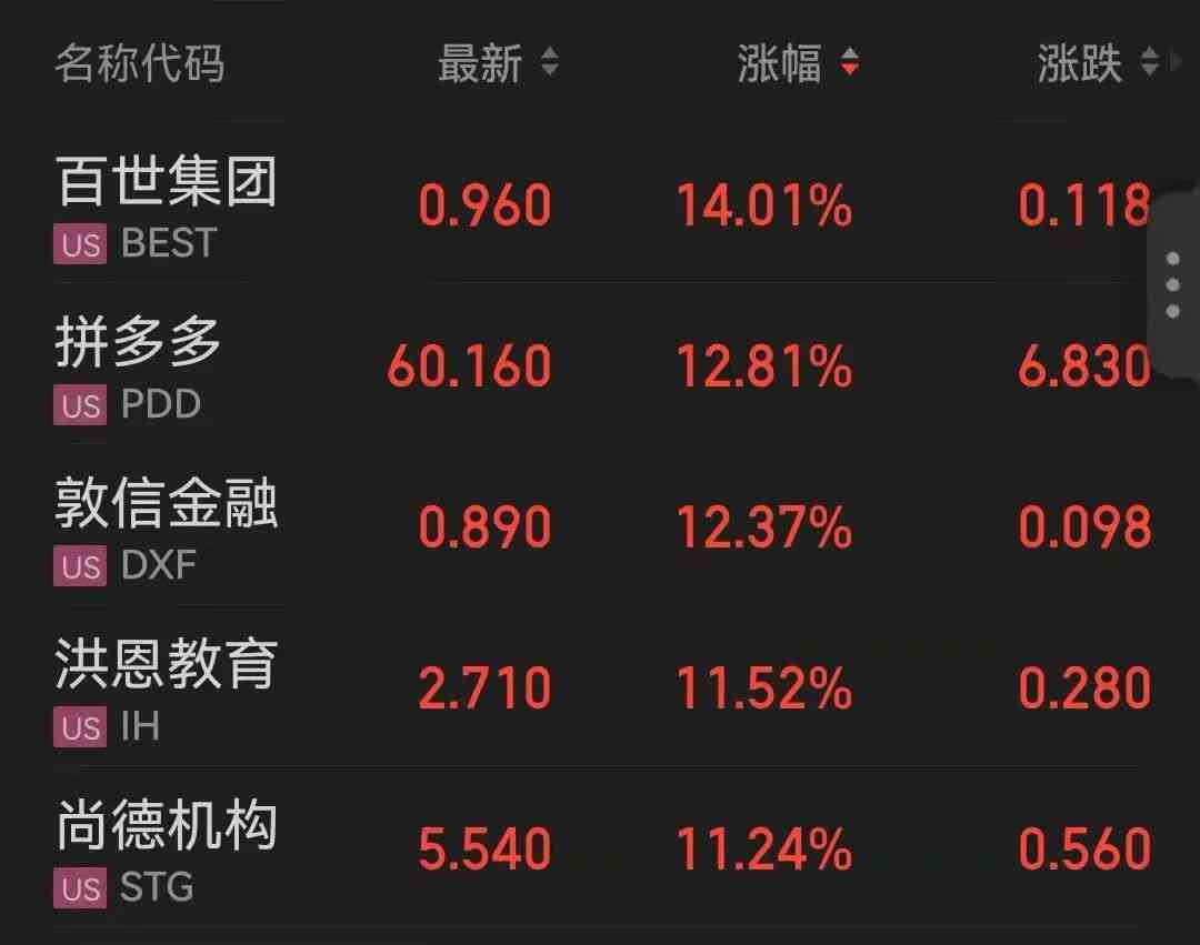 熱門(mén)中概股周二多數(shù)上漲 拼多多漲近13%