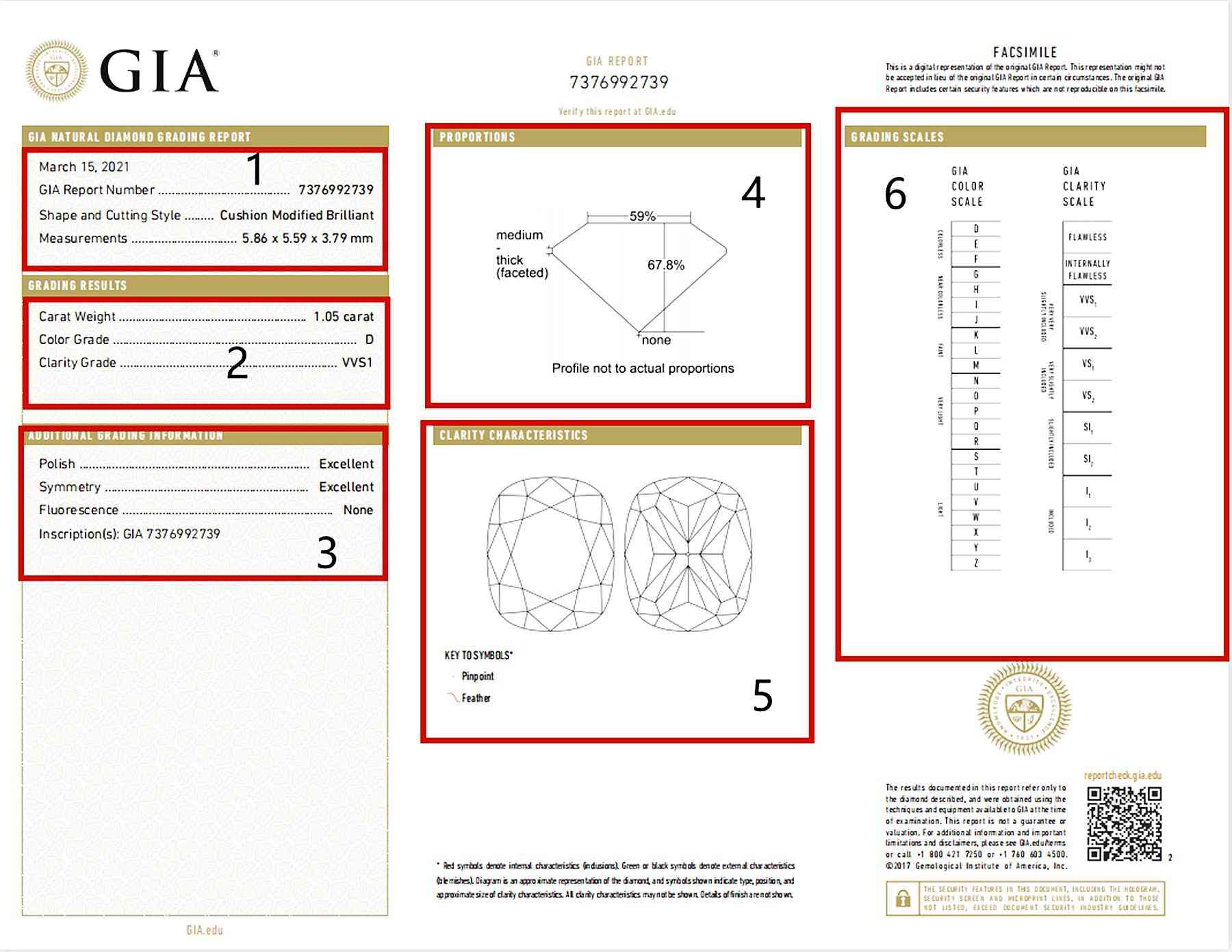 GIA鉆石證書內(nèi)容包括鉆石的克拉重量、顏色、凈度、切工和熒光等詳細(xì)評(píng)級(jí)。對(duì)于消費(fèi)者而言,可以通過GIA證書查看這顆鉆石的各項(xiàng)參數(shù)級(jí)別,全面了解鉆石品質(zhì)。