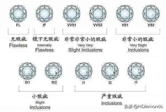還是用鉆石來(lái)舉例,在GIA鉆石凈度標(biāo)準(zhǔn)中,從FL(無(wú)瑕級(jí))到I(內(nèi)含級(jí))有11個(gè)等級(jí)。