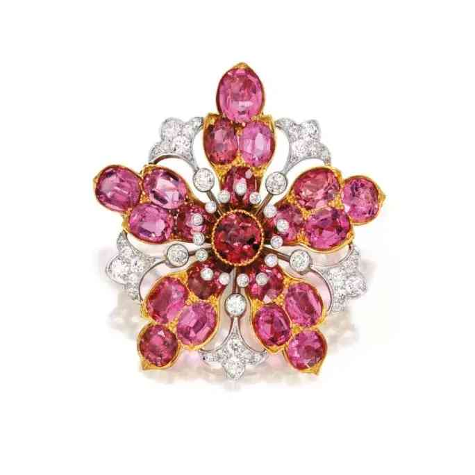 Paulding Farnham胸針:金、鉑金鍍層、粉色碧璽、鉆石