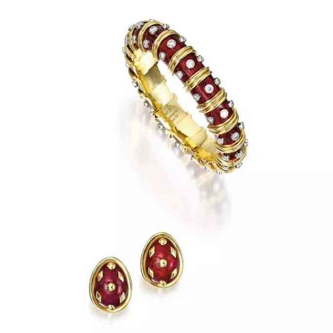 Jean Schlumberger手鐲與耳釘:金、鉆石、琺瑯