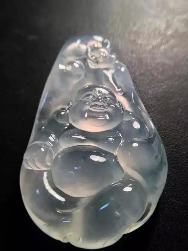 這塊設(shè)計(jì)的是“彌勒佛”,玉質(zhì)凝潤細(xì)膩,色澤瑩潤亮澤,明快歡脫。彌勒佛圓臉大耳,面相豐潤飽滿,憨態(tài)可掬,諸事皆付笑談之中,與世無爭而淡泊名利,以樂觀之心行走人間,諸事不必介懷。