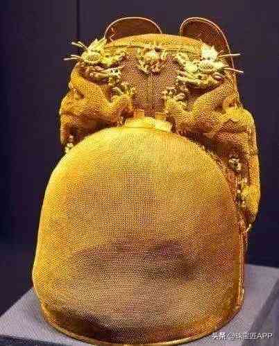 比如,明代萬(wàn)歷皇帝的金絲蟠龍翼善冠,這頂金冠重量?jī)H有826克,冠頂處綴有游龍戲珠圖案,由518根0.2毫米的金花絲,編織成一層細(xì)密的冠身,觸感薄如輕紗,足以見得當(dāng)時(shí)工藝之高超。