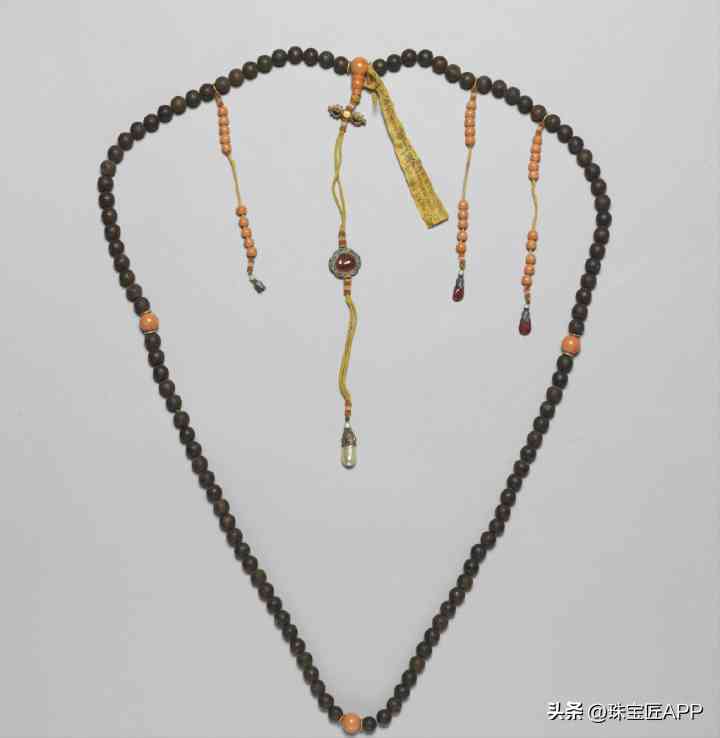?朝珠是由108粒珠子貫穿而成,每隔27粒珠子中間需要隔一粒佛頭,除此之外,朝珠還需要有三條記捻和一條背云。