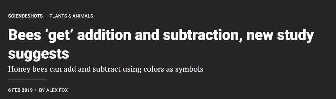 蜜蜂還會簡單的加減法(比如2-1=1),在72%的情況下得到正確答案,和幼兒園小朋友差不多。
