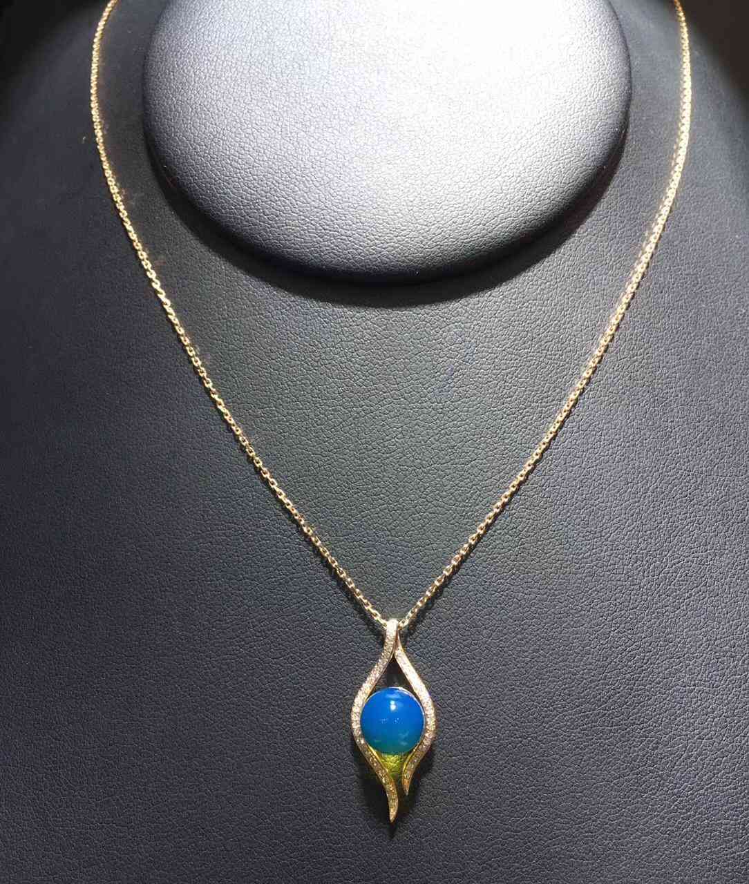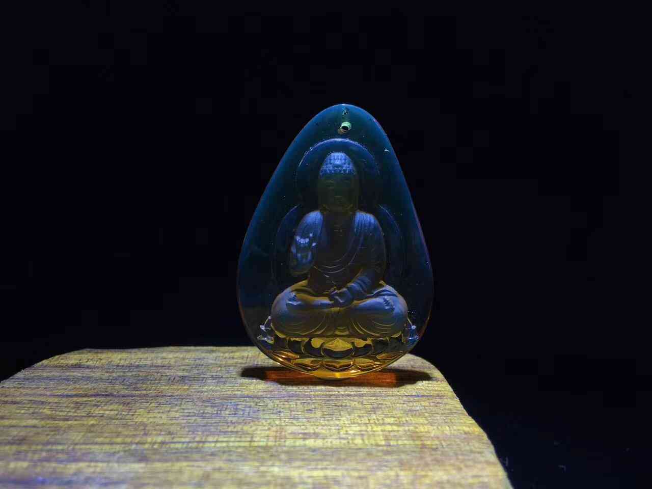 藍(lán)珀是最有價(jià)值的琥珀顏色,僅占總量的0.2%,有時(shí)與白色琥珀伴生。藍(lán)珀(天空藍(lán))在白底自然光線下,是淡黃而純凈的,在變化角度時(shí)肉眼能感覺到輕微藍(lán)色反應(yīng),在深色底色和自然光下會(huì)出現(xiàn)強(qiáng)烈的天空色,在紫光燈下,會(huì)出現(xiàn)槍類的藍(lán)色熒光。