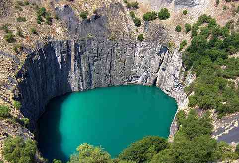 后來人們從這里開采出大約1500萬克拉的鉆石?,F(xiàn)在這個(gè)礦已廢棄,它變成了一個(gè)直徑大約0.5千米的漏斗型的人工湖,湖底距地面差不多有450米深,湖水有250米,有恐高癥的親千萬別去看,那絕對(duì)是如臨深淵。