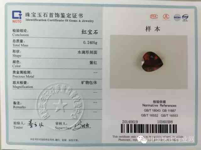 紅寶石類產(chǎn)品的“珠寶玉石首飾鑒定證書”主要包括:
