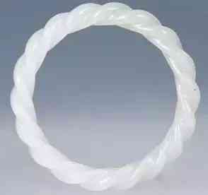 北方稱為麻花,南方稱為絞絲,屬于工鐲的一種。這種鐲子一開始是仿的銀鐲里的麻花桿式樣,只是將福鐲那樣的圓鐲表面刻成麻繩表面那樣的紋路。后來蘇工將這種鐲子式樣精益求精,把鐲子的每一股都分開,但是都依順序角度纏在一起?;驹砗蛽P(yáng)工里的玉連環(huán)類似。這種鐲型把玉工發(fā)揮到淋漓盡致,多用軟玉加工,可做成3股4股,到6股或再望上就基本不能佩帶,只能放著當(dāng)藝術(shù)品了。