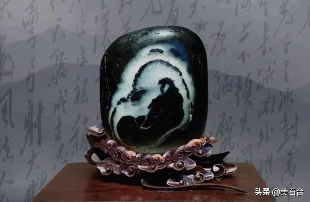 說實話,王美人給自己688萬的奇石取名《沁園春》,這是一方岷江墨玉石,石頭表面有個人物,極為形象。