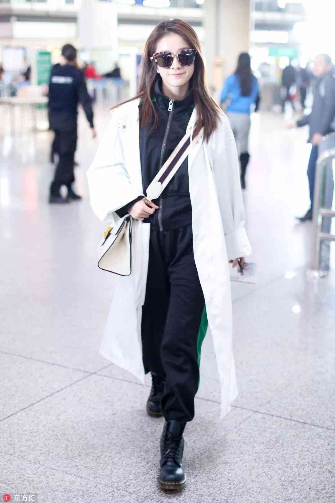 宋茜的漆皮大翻領(lǐng)羽絨服吸睛力十足,搭配功力超深的她選擇黑色高領(lǐng)白拉鏈運(yùn)動(dòng)裝做內(nèi)搭,和白色裝飾馬丁靴相呼應(yīng),時(shí)髦又帥氣。