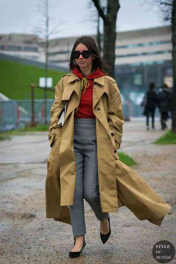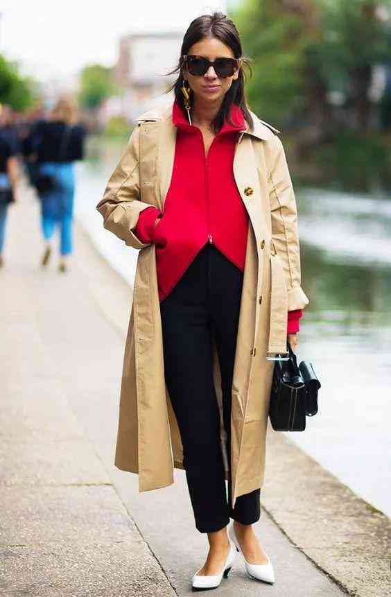 駝色風(fēng)衣也是現(xiàn)在大部分OL女生的必備,這個(gè)冬天別忘了用運(yùn)動(dòng)衫搭配,出勤造型也一樣hold得住。九分西裝褲+貓跟鞋優(yōu)雅經(jīng)典,加上運(yùn)動(dòng)衫的混搭會(huì)讓你的出勤look充滿活力。