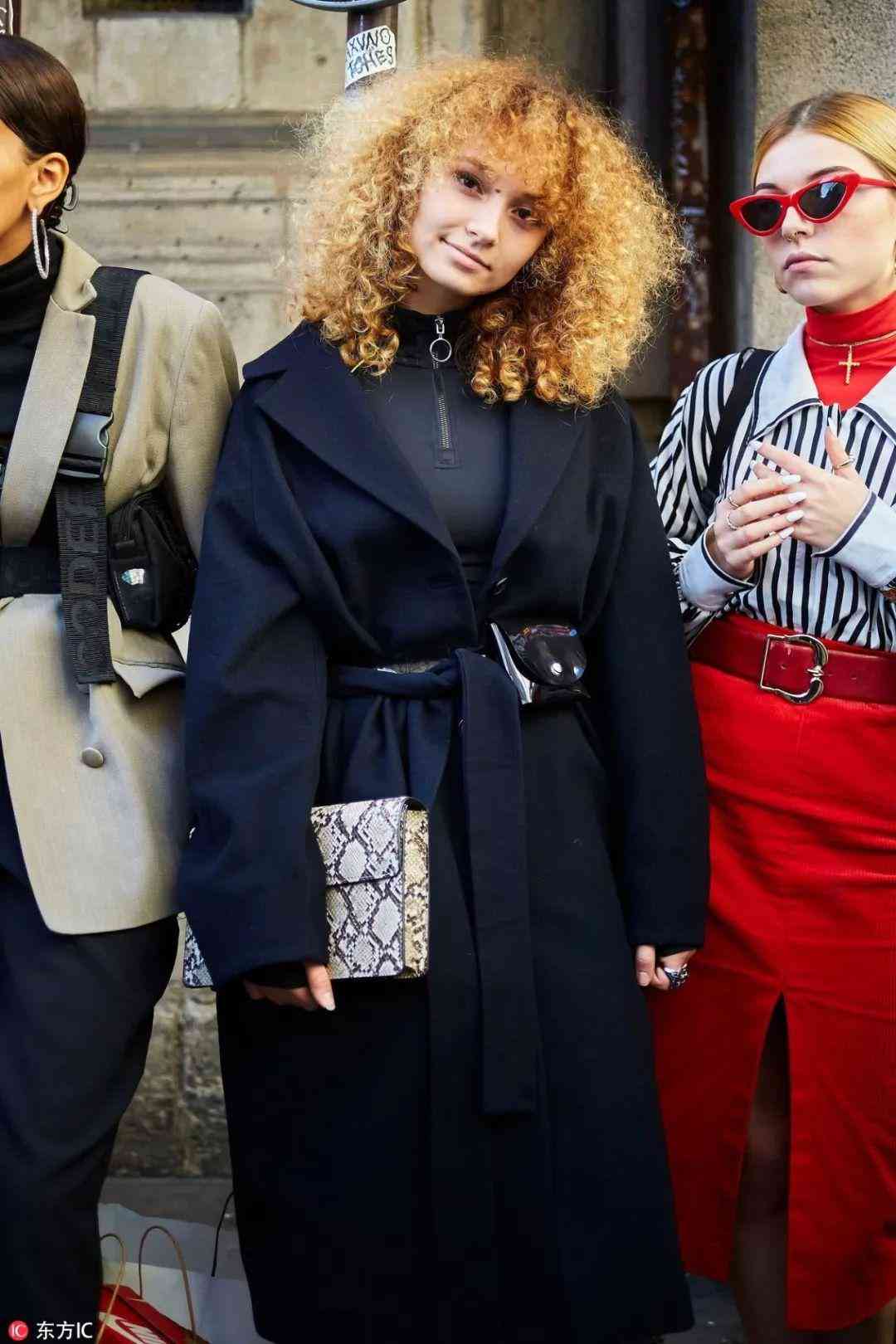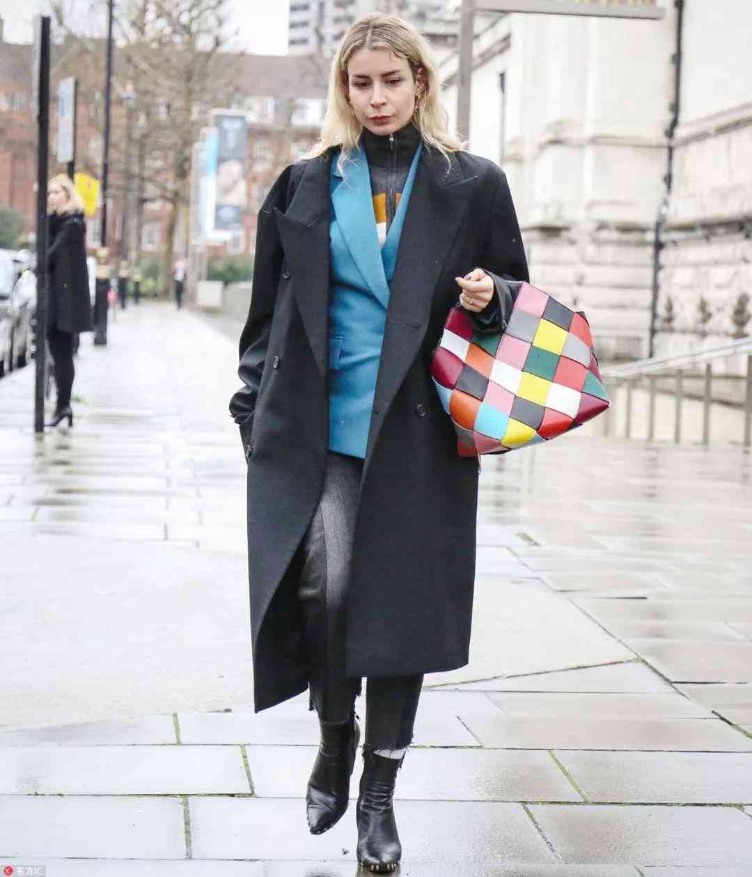 一身黑色的外套內(nèi)搭湖藍(lán)色收腰西裝亮眼又好看,時(shí)髦精別忘了里面加上運(yùn)動(dòng)衫,想把色彩發(fā)揮到極致,那就再加上一只拼色手袋,混搭的效果非常棒。