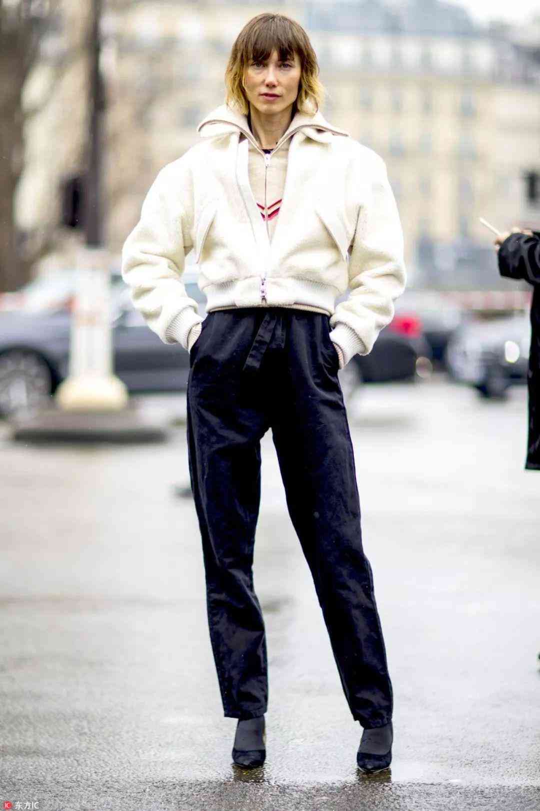 還有這種超大領(lǐng)子的運(yùn)動(dòng)衫,可以搭配廓形超短款外套個(gè)性十足,再加上高腰黑色寬松收腳褲和尖頭高跟鞋,腿長(zhǎng)一米八!