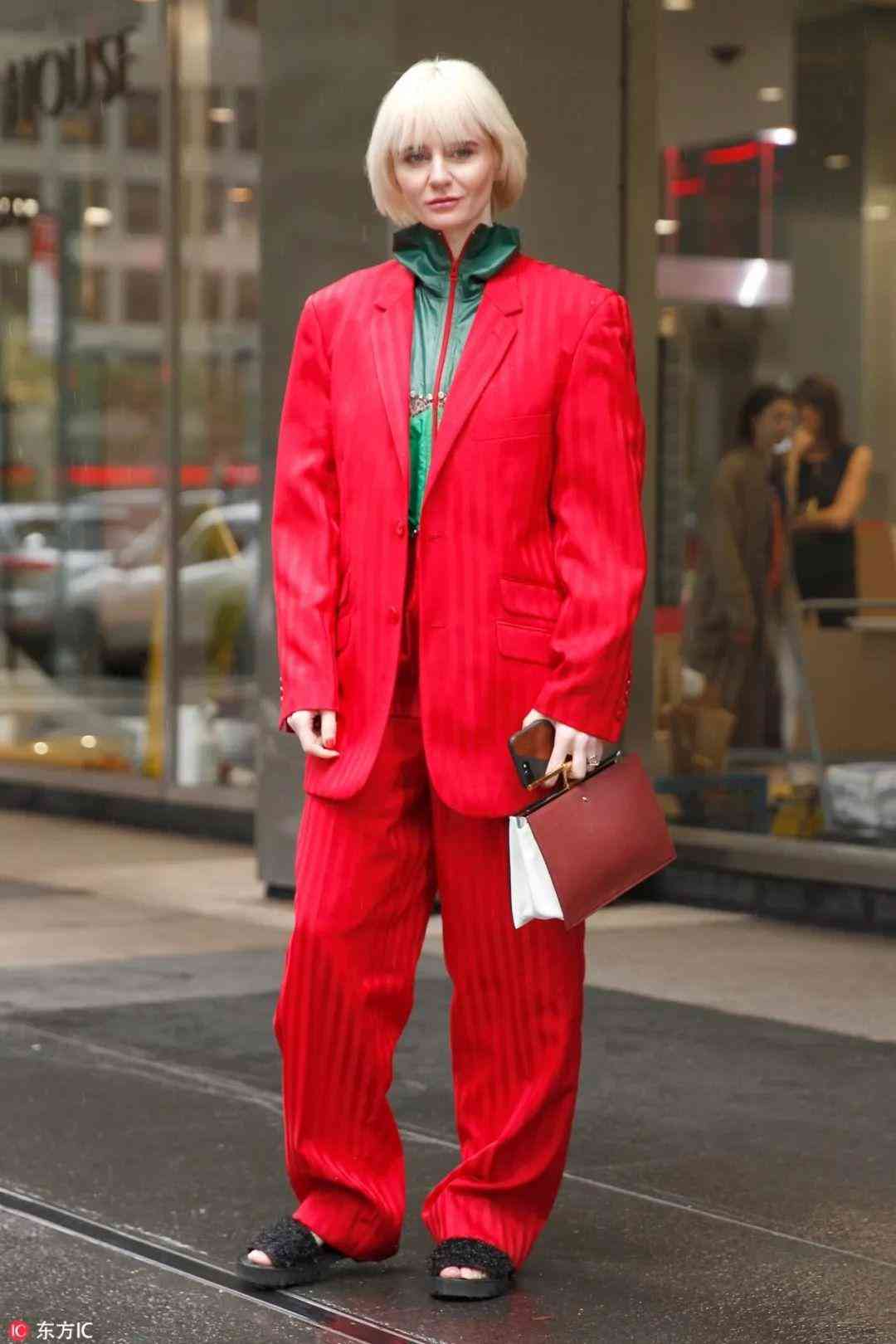 膚色較白的女生不妨嘗試一下這種紅色西裝套裝+運(yùn)動(dòng)衫的搭配,大膽別致絕對(duì)是人群中回頭率最高的時(shí)髦精。