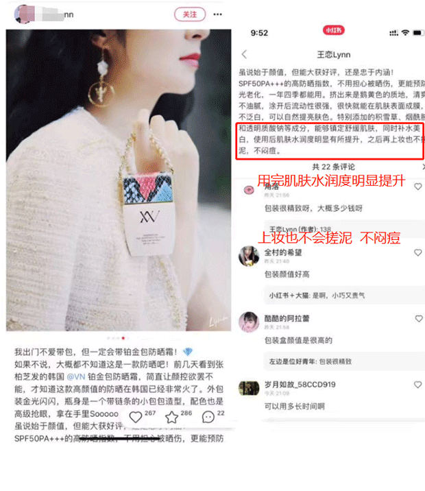 再看看小紅書(shū)上小姐姐們發(fā)的po文 ,都說(shuō)它“輕薄水潤(rùn)”“不油膩”,“上臉不搓泥”,“美白防曬兩不誤”,“皮膚白到發(fā)光”。