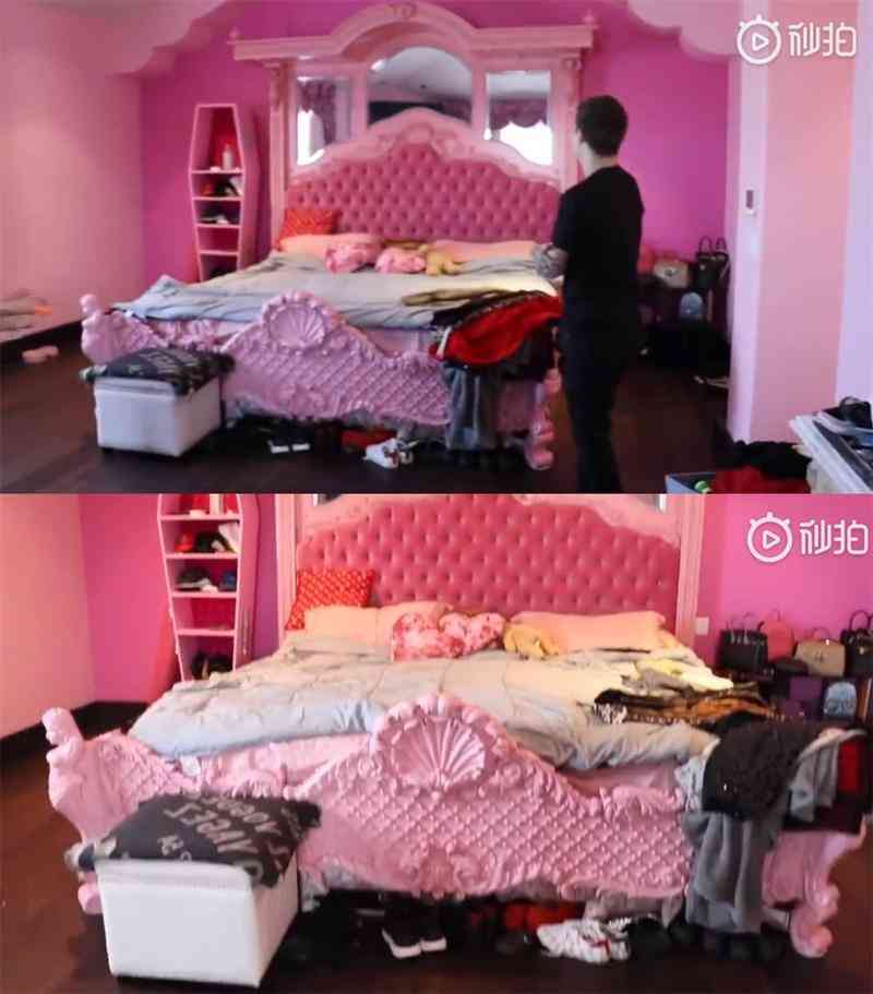 這個床真的是很公主了有沒有,現(xiàn)實生活中的芭比嘛,雖然看起來挺亂的