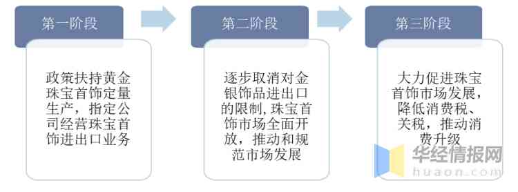 我國珠寶首飾行業(yè)政策經(jīng)歷由計劃完成到逐步開發(fā)到大力促進的成長階段。階段(20世紀80年代前):政府制定黃金珠寶首飾生產(chǎn)的指令性計劃,并由指定企業(yè)進行進出口業(yè)務(wù);第二階段(20世紀90年代-21世紀00年代):中國人民銀行先后取消了對白銀制品和黃金制品的業(yè)務(wù)管制,我國珠寶首飾行業(yè)市場不斷開放,并通過出臺消費稅等逐步促進其規(guī)范發(fā)展;第三階段(21世紀10年代以來):我國政府開始通過降低消費稅與關(guān)稅等方式大力促進珠寶首飾行業(yè)的發(fā)展,推動消費的迭代升級。
