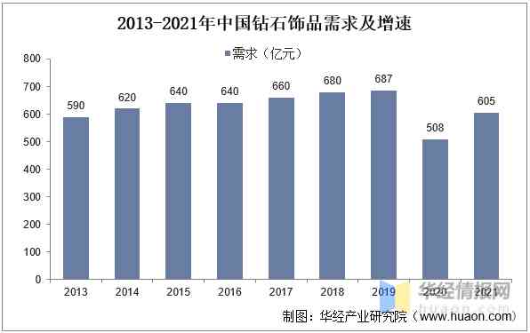 鉆石需求方面,我國鉆石飾品需求逐年上升,疫情前2019年達到687億元,2020年受疫情影響較大,2021年有明顯恢復(fù)。