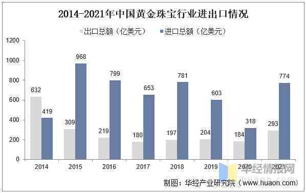 2014-2021年中國黃金珠寶行業(yè)進出口情況