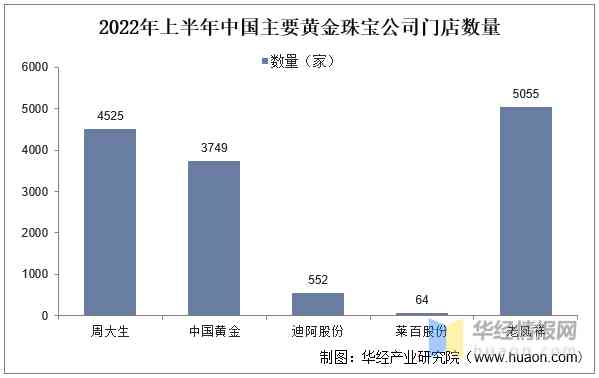 2022年上半年中國主要黃金珠寶公司門店數(shù)量
