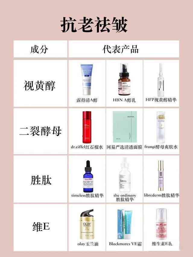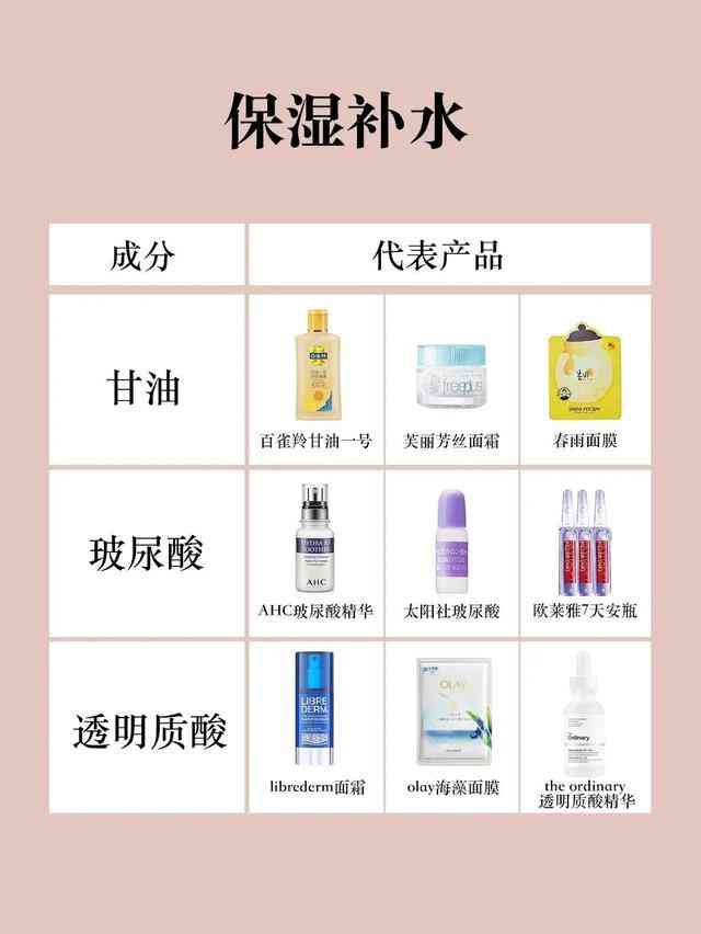 我知道,平時不關(guān)注成分的姐妹,看到上面這個表也是滿臉問號的。所以這些成分的代表產(chǎn)品,我也都一起找過來了。