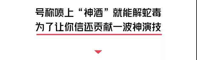 一人假裝抓蛇不慎被咬,正當(dāng)痛苦萬(wàn)分時(shí),突然出現(xiàn)手握“神酒”的救命恩人,拿著“神酒”隨手一噴,不消片刻被咬的人就生龍活虎。