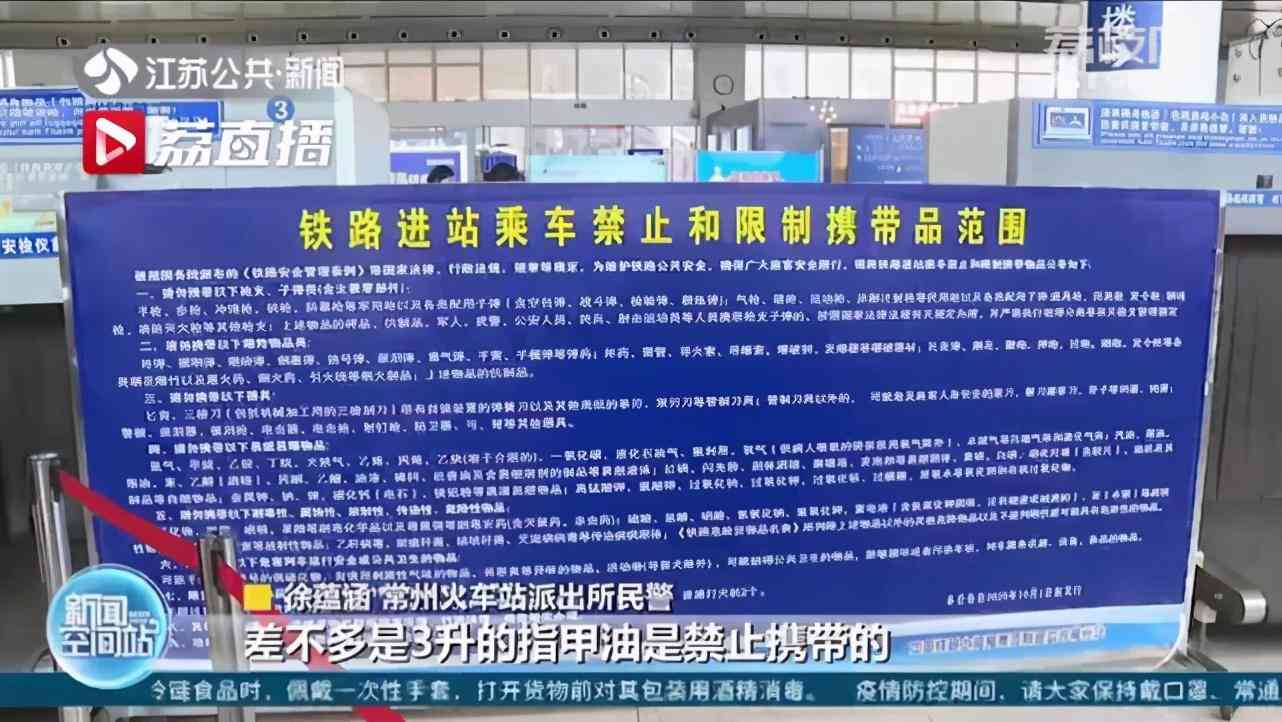 常州火車(chē)站派出所民警徐蘊(yùn)涵說(shuō):“指甲油是限制攜帶20ml以?xún)?nèi),像她攜帶了200瓶指甲油相當(dāng)于3升,是禁止攜帶的。這些指甲油交由客運(yùn)部門(mén)進(jìn)一步處理,民警對(duì)該名女子進(jìn)行教育。”