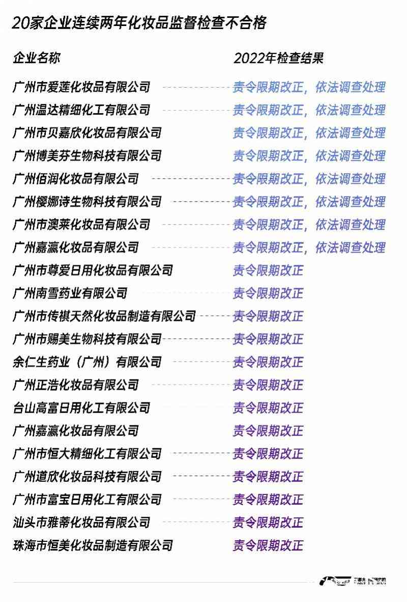 南都大數(shù)據(jù)研究院比對發(fā)現(xiàn),在今年的不合格名單中,有21家企業(yè)去年也曾被查出問題。例如,廣州嘉瀛化妝品有限公司去年曾被發(fā)現(xiàn)物料與產(chǎn)品方面存在危險品倉庫管理不規(guī)范問題,今年兩次受檢也都沒有過關(guān)。